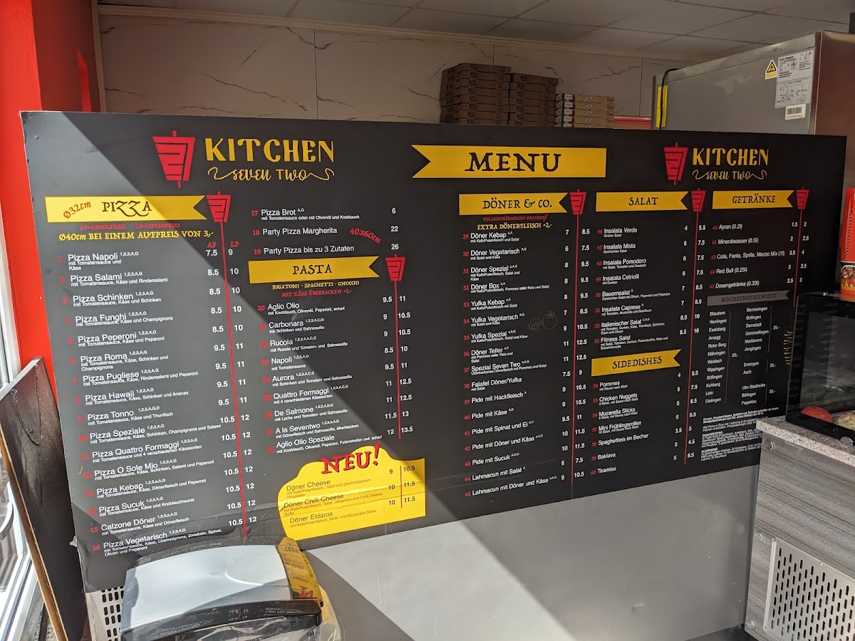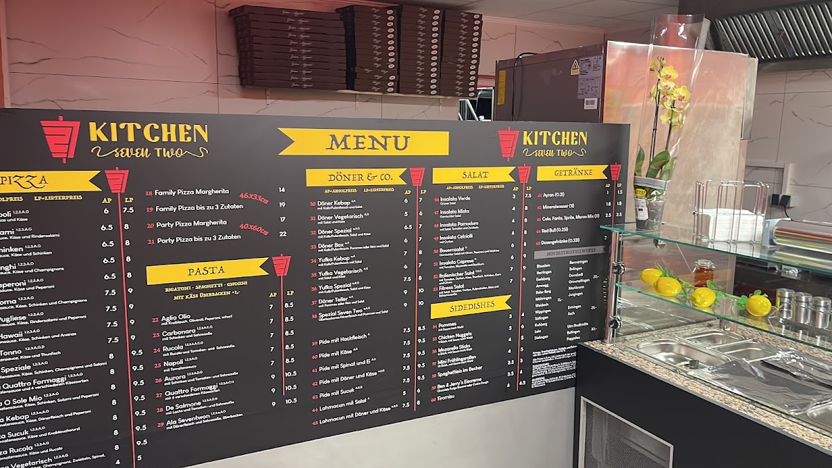 Kitchen seven two offers a simple yet satisfying menu centered around well-prepared Turkish favorites. Expect a variety of comforting dishes that suit casual meals, whether you're looking for a quick bite or a relaxed take-away experience. The menu includes standouts like freshly made döner, generous kebabs, and even a selection of pizzas, reflecting a diverse and approachable range of flavors.